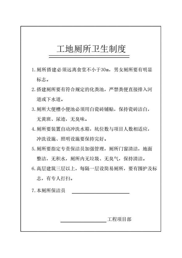 表格名称:工地厕所卫生制度
