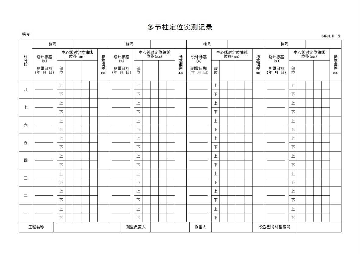 表格名称:多节柱定位实测记录