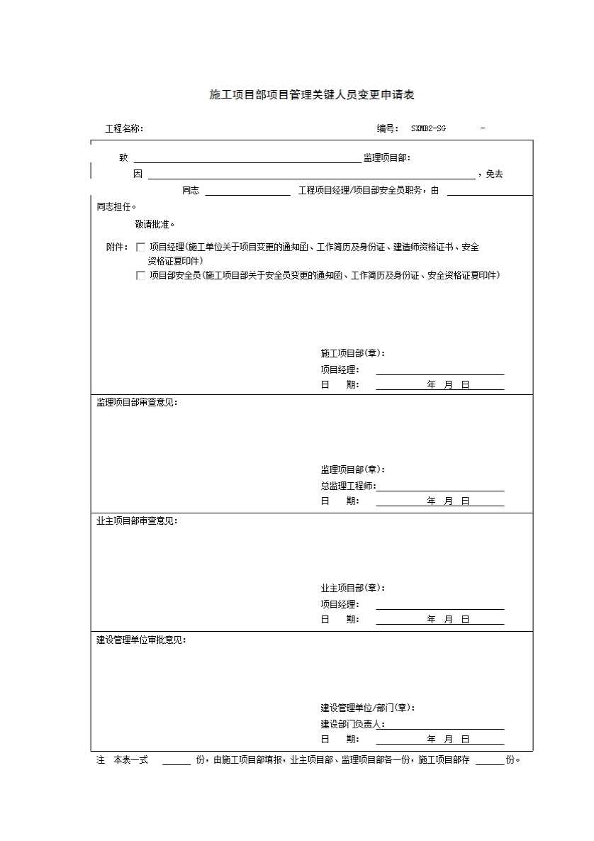 表格名称:SXMB2 施工项目部项目管理关键人员变更申请表