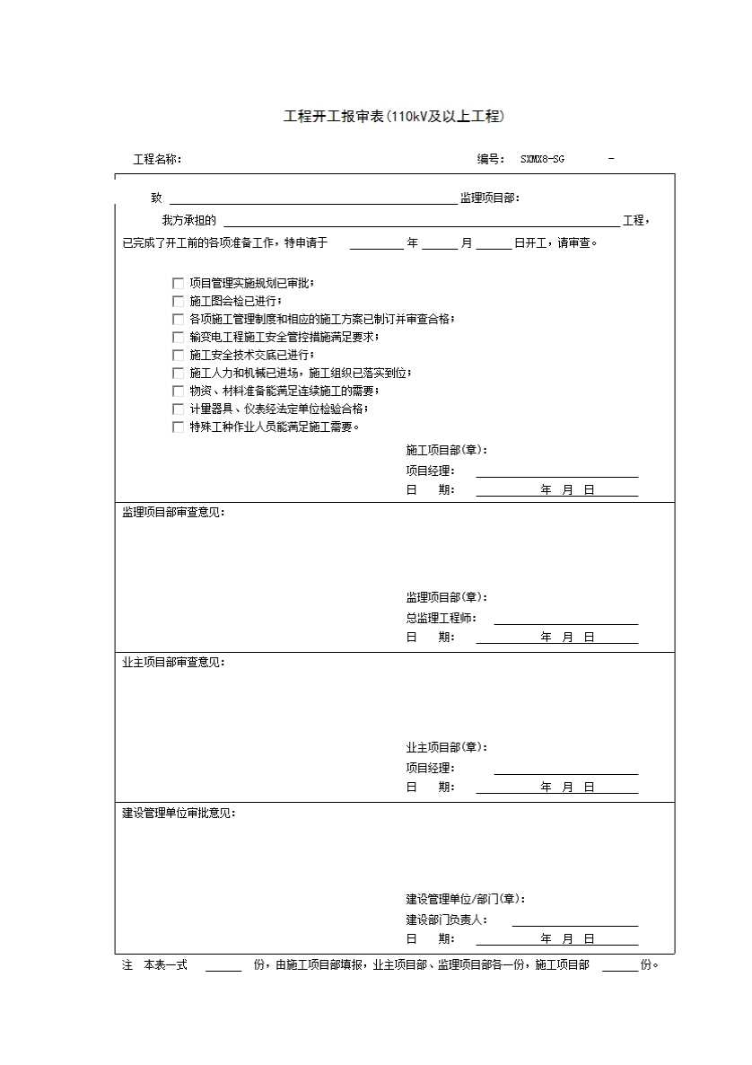 表格名称:SXMX8 工程开工报审表(110kV及以上工程)