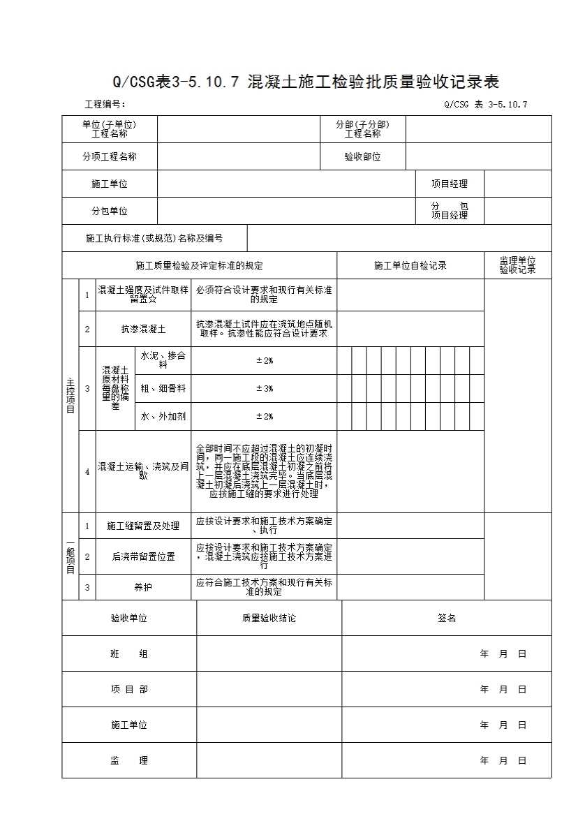 QCSG 表 3-6.6.6 混凝土施工检验批质量验收记录表
