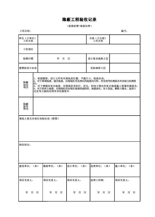 表格名称:隐蔽工程验收记录(地基验槽-地基处理)