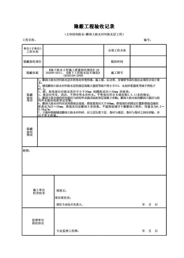 表格名称:隐蔽工程验收记录(主体结构防水-膨润土防水材料防水层工程)