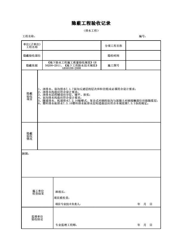 表格名称:隐蔽工程验收记录(排水工程)