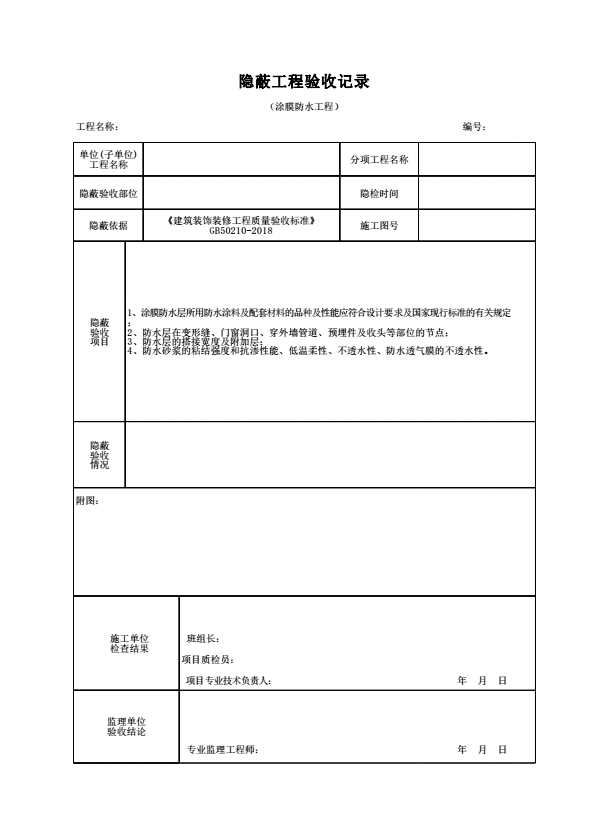 表格名称:隐蔽工程验收记录(涂膜防水工程)