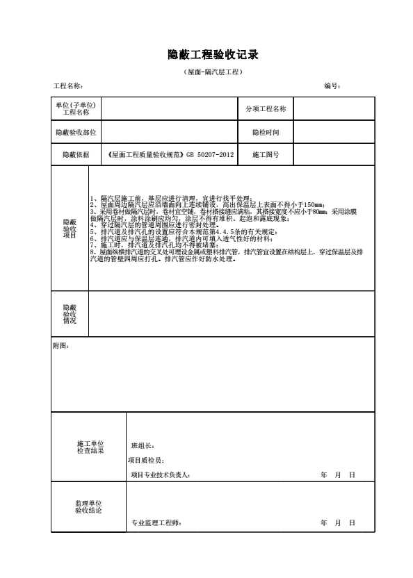 表格名称:隐蔽工程验收记录(屋面-隔汽层工程)