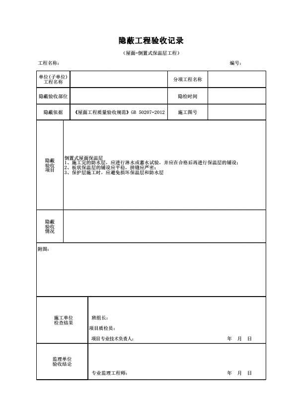 表格名称:隐蔽工程验收记录(屋面-倒置式保温层工程)