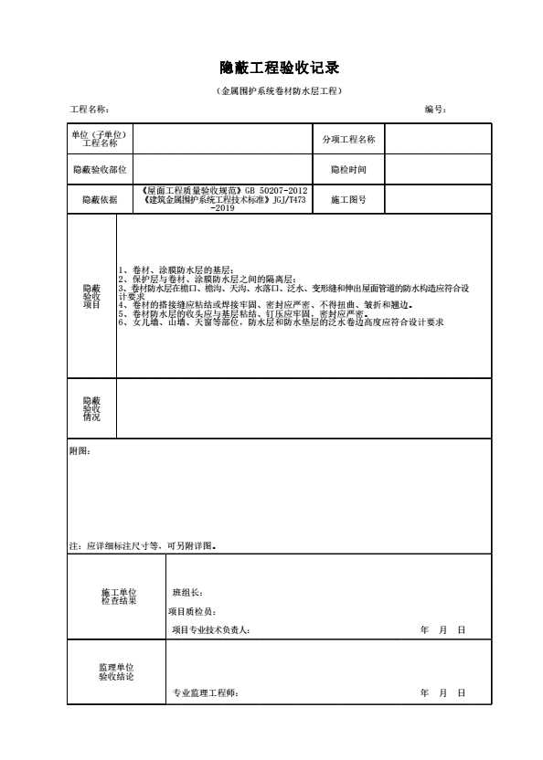 表格名称:隐蔽工程验收记录(金属围护系统卷材防水层工程)