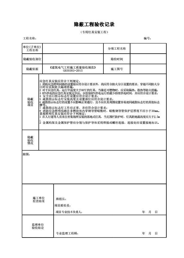 表格名称:隐蔽工程验收记录(专用灯具安装工程)