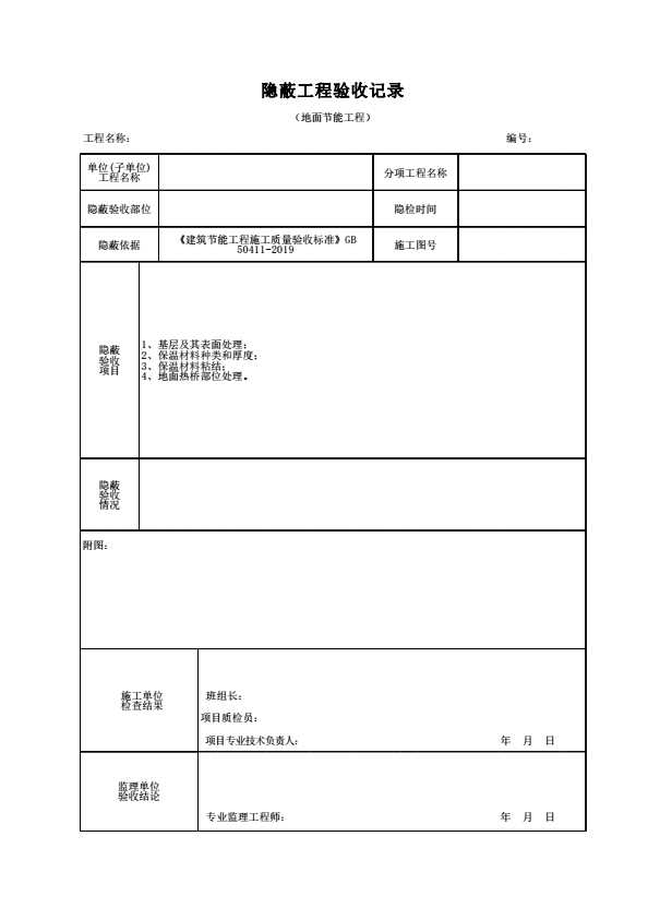 表格名称:隐蔽工程验收记录(地面节能工程)