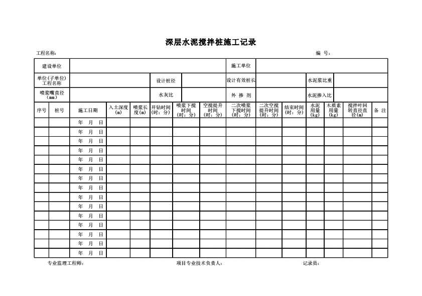 表格名称:深层水泥搅拌桩施工记录