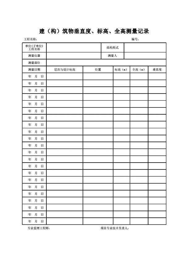 表格名称:建(构)筑物垂直度、标高、全高测量记录