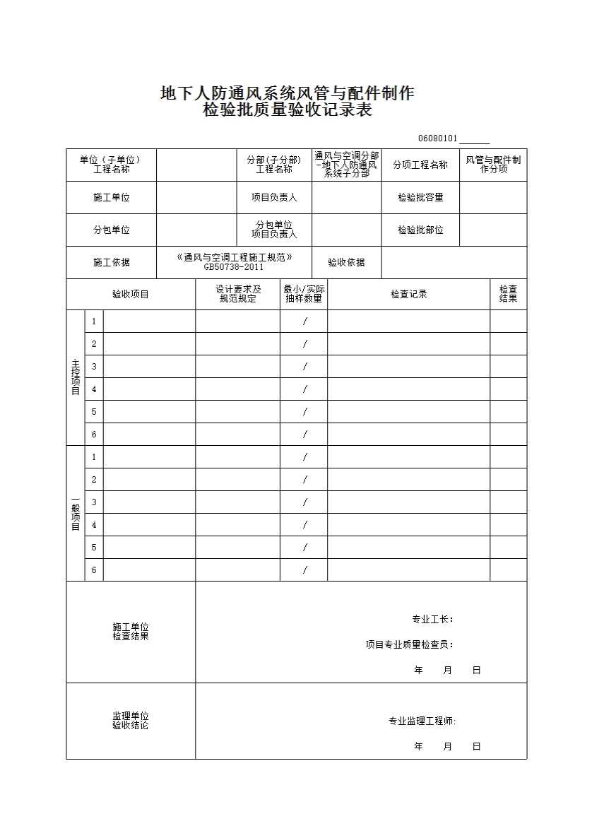 表格名称:06080101_地下人防通风系统风管与配件制作检验批质量验收记录表
