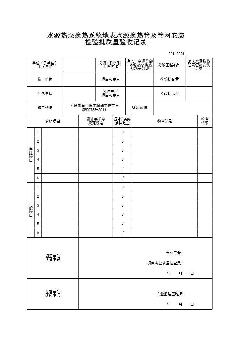 表格名称:06140501_水源热泵换热系统地表水源换热管及管网安装检验批质量验收记录