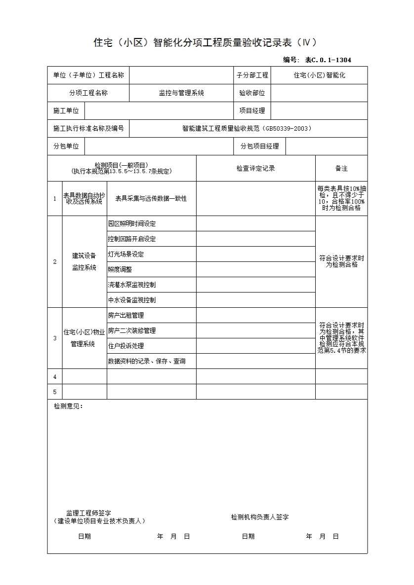 表格名称:C.0.1-1304 住宅(小区)智能化分项工程质量验收记录表(Ⅳ
