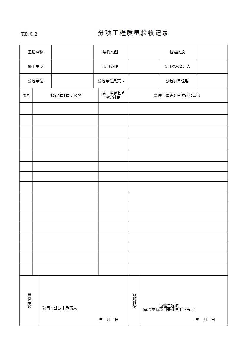 表B.0.2分项工程质量验收记录