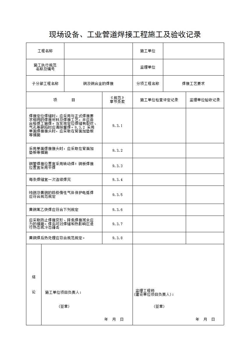 表格名称:铜及铜合金的焊接(焊接工艺要求)