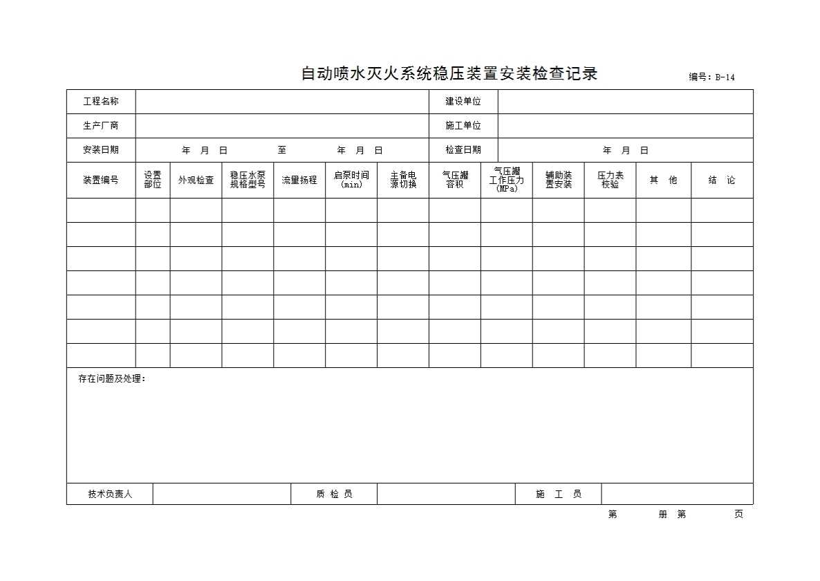 表格名称:自动喷水灭火系统稳压装置安装检查记录