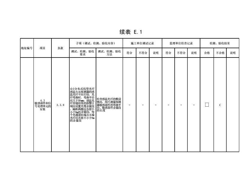 表格名称:表E.1 火灾报警控制器、消防联动控制器、火灾报警控制器(联动型)及其现场配接部件调试、检测、验收记录(续表47)