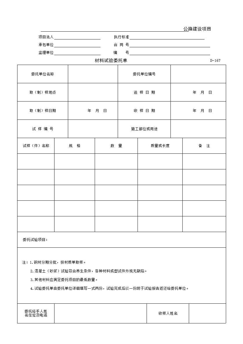 D-167 材料试验委托单