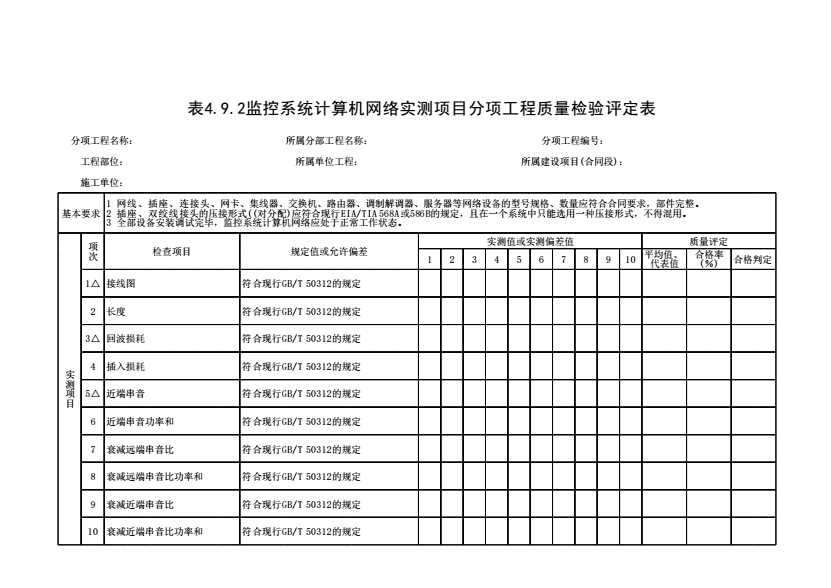 表格名称:表4.9.2 监控系统计算机网络实测项目分项工程质量检验评定表