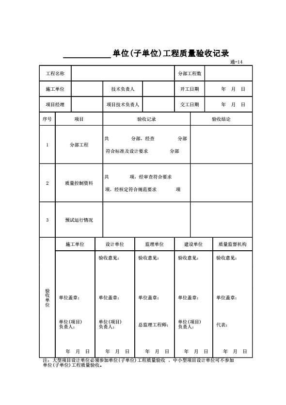表格名称:通-14 单位(子单位)工程质量验收记录