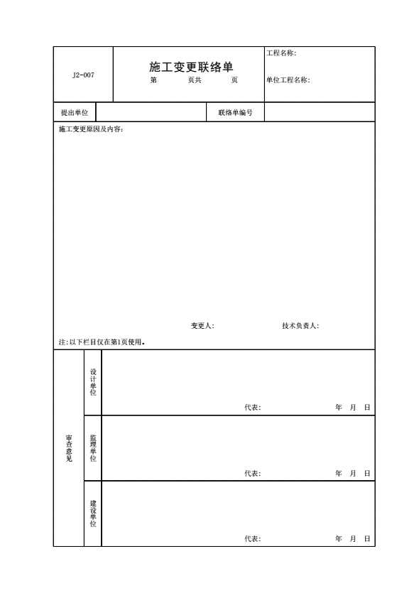J2-007 施工变更联络单