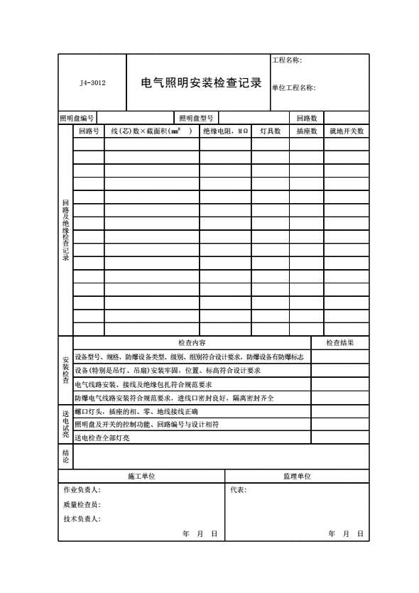 J4-3012 电气照明安装检查记录