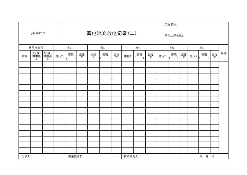 表格名称:J4-3017.2 蓄电池充放电记录(二)