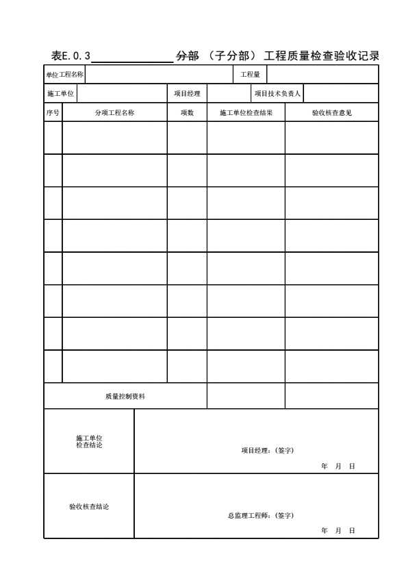 表格名称:表E.0.3 ______子分部工程质量检查验收记录(汇总用)