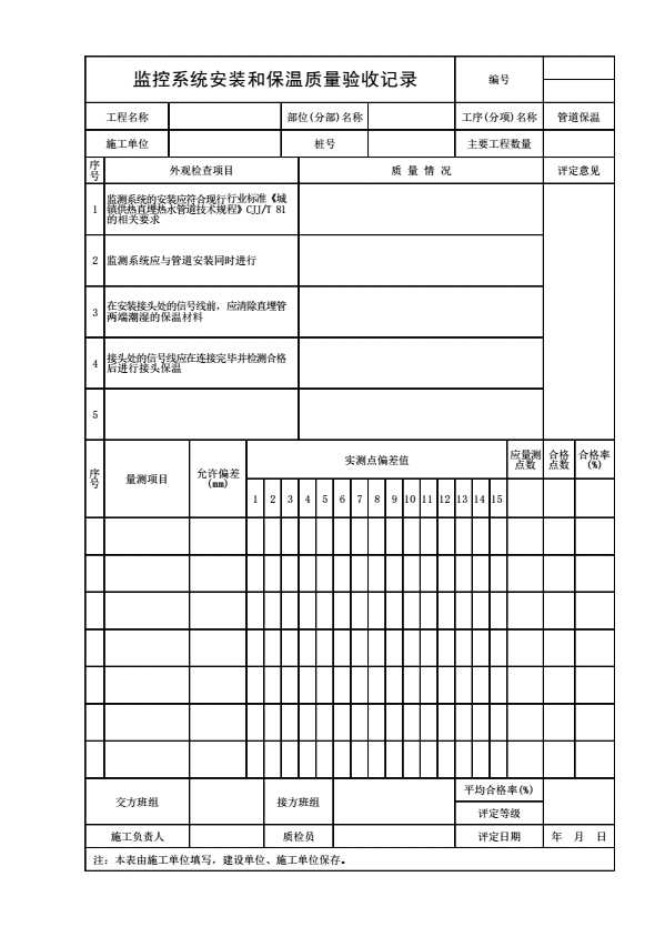 表格名称:监控系统安装和保温质量验收记录