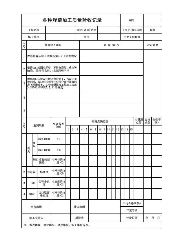 各种焊缝加工质量验收记录