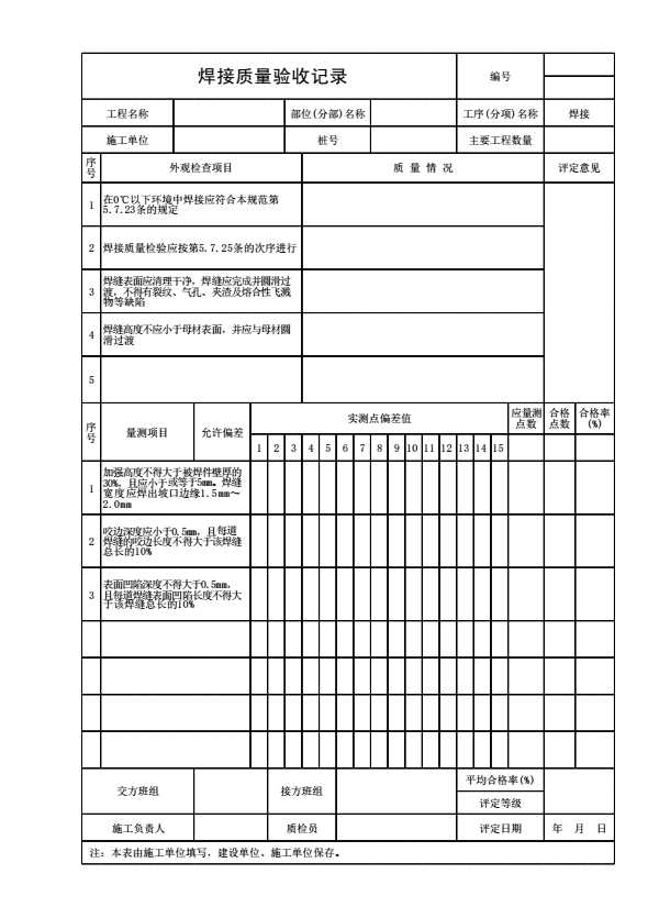焊接质量验收记录