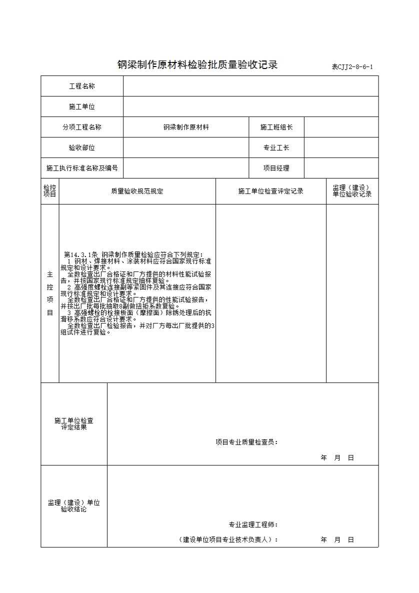 表CJJ2-8-6-1 钢梁制作原材料检验批质量验收记录