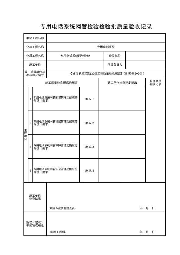 表格名称:专用电话系统网管检验检验批质量验收记录