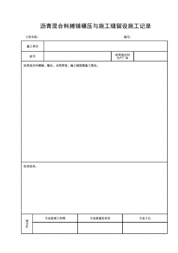 表格名称:沥青混合料摊铺碾压与施工缝留设施工记录