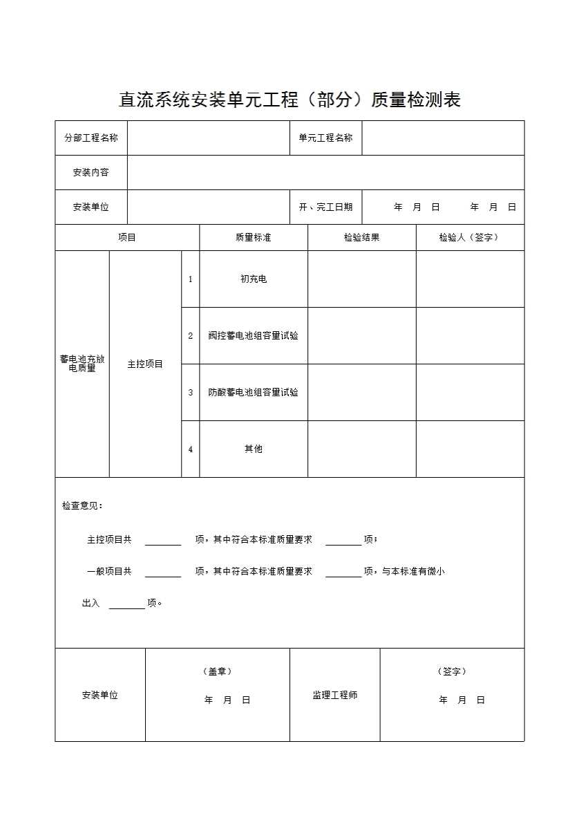 表格名称:直流系统安装单元工程(部分)质量检测表3
