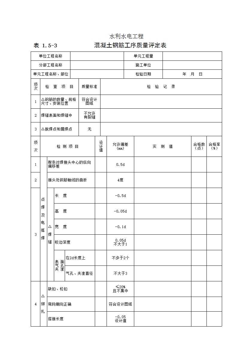表格名称:表1.5-3 混凝土钢筋工序质量评定表
