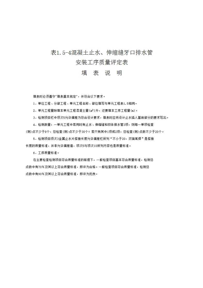 表1.5-4 混凝土止水、伸缩缝和排水管安装工序质量评定表