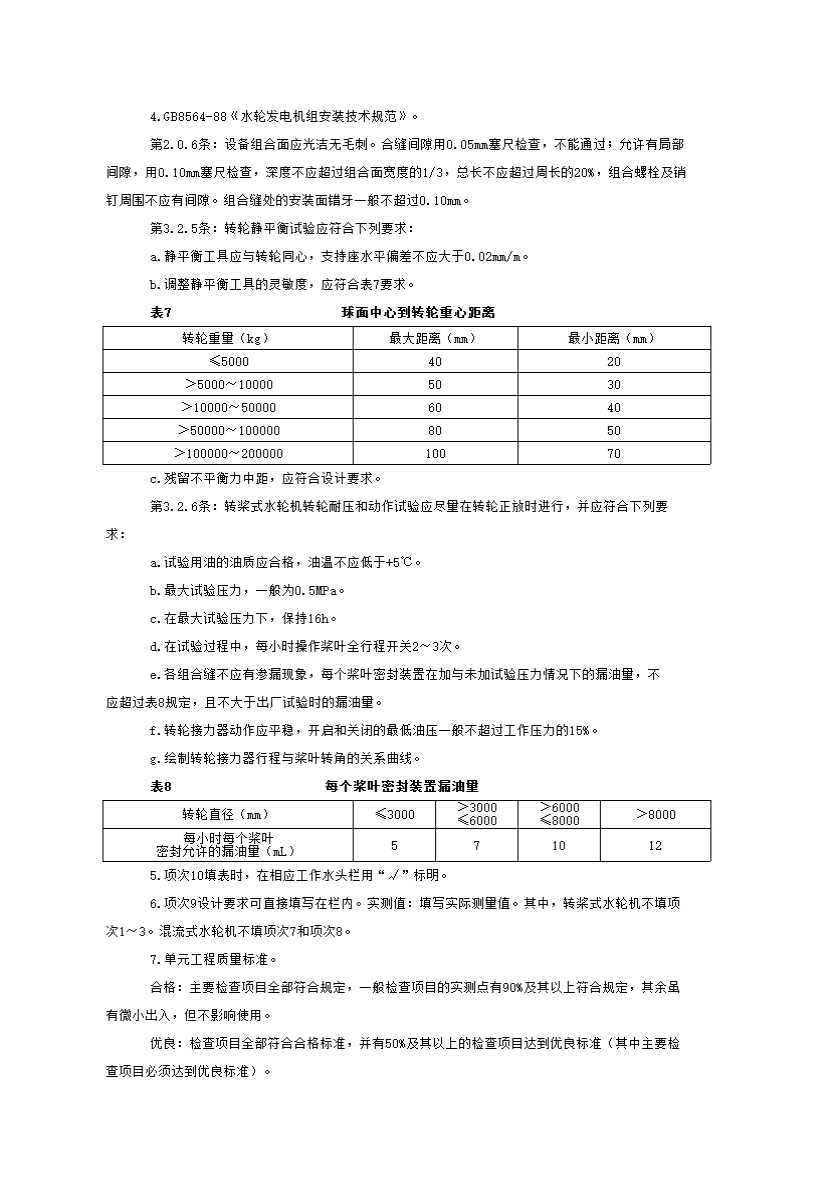 表格名称:表3.5 立式反击式水轮机转轮装配单元工程质量评定表