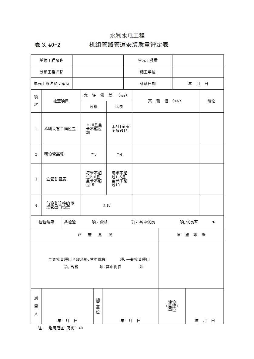 表格名称:表3.40-2 机组管路管道安装质量评定表
