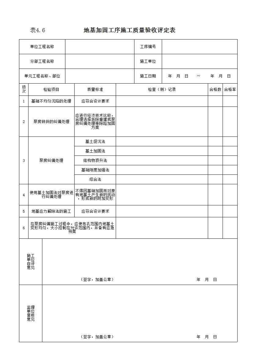 表格名称:4.6 地基加固工序施工质量验收评定表