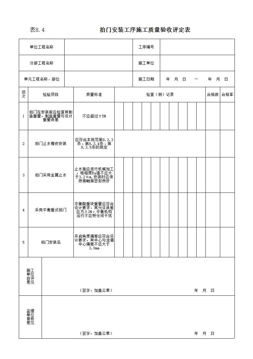 表格名称:8.4 拍门安装工序施工质量验收评定表