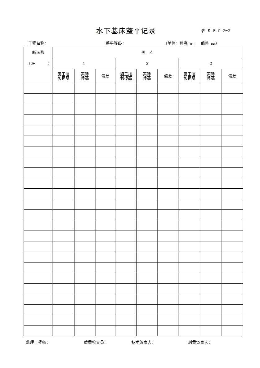 表格名称:表K.8.0.2-3 水下基床整平记录
