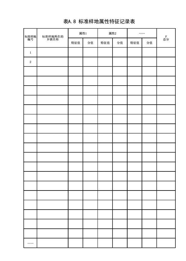 表格名称:表A.8 标准样地属性特征记录表