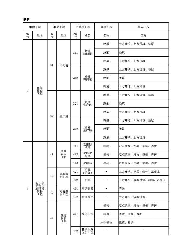 表格名称:附录B 土地整治项目工程质量验收规范项目划分表