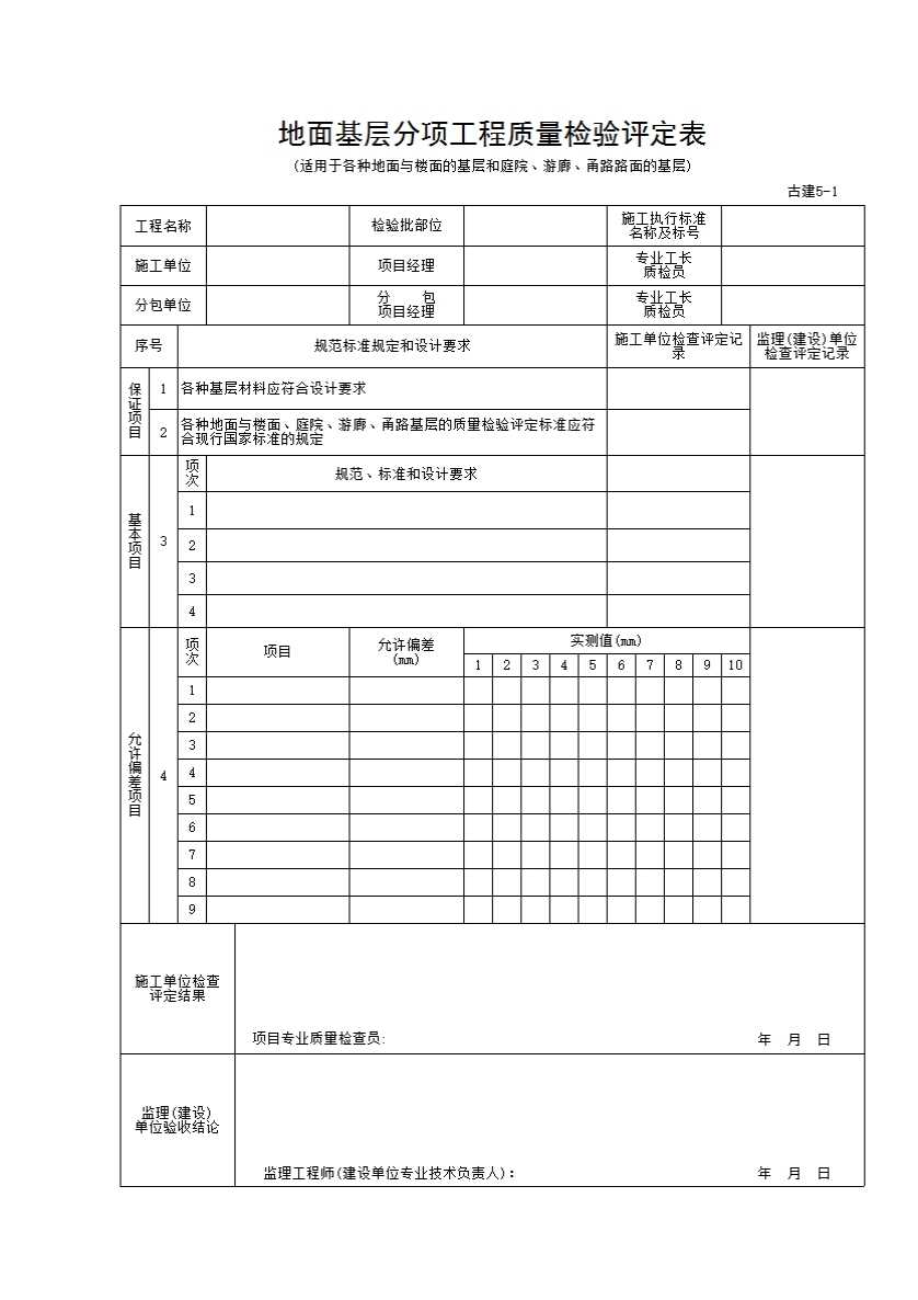 表格名称:古建5-1 地面基层分项工程质量检验评定表