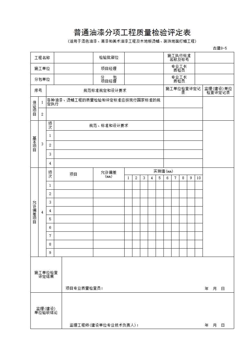 古建8-5 普通油漆分项工程质量检验评定表