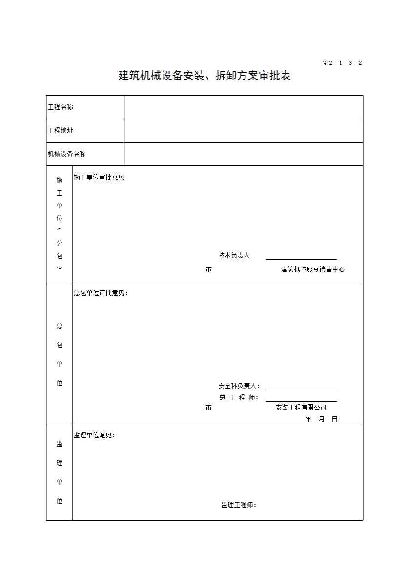 表格名称:建筑机械设备安装、拆卸方案审批报表 安2—1—3—2