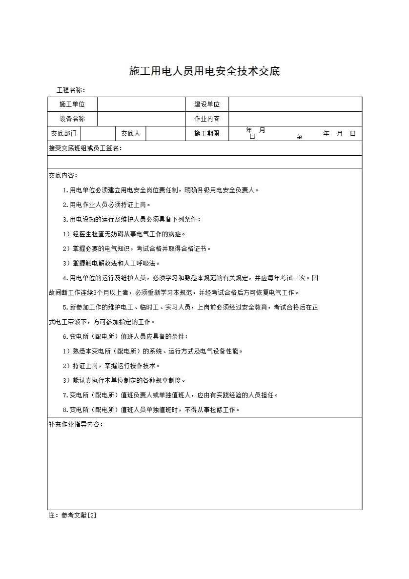 表格名称:施工用电人员用电安全技术交底